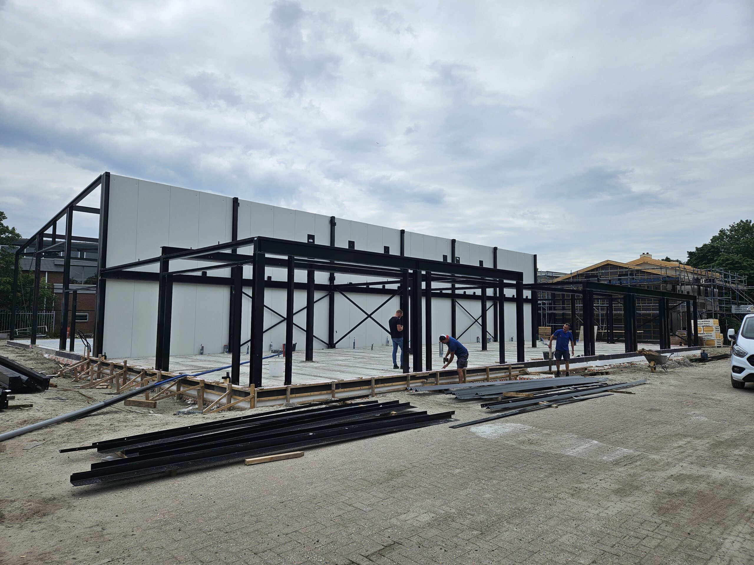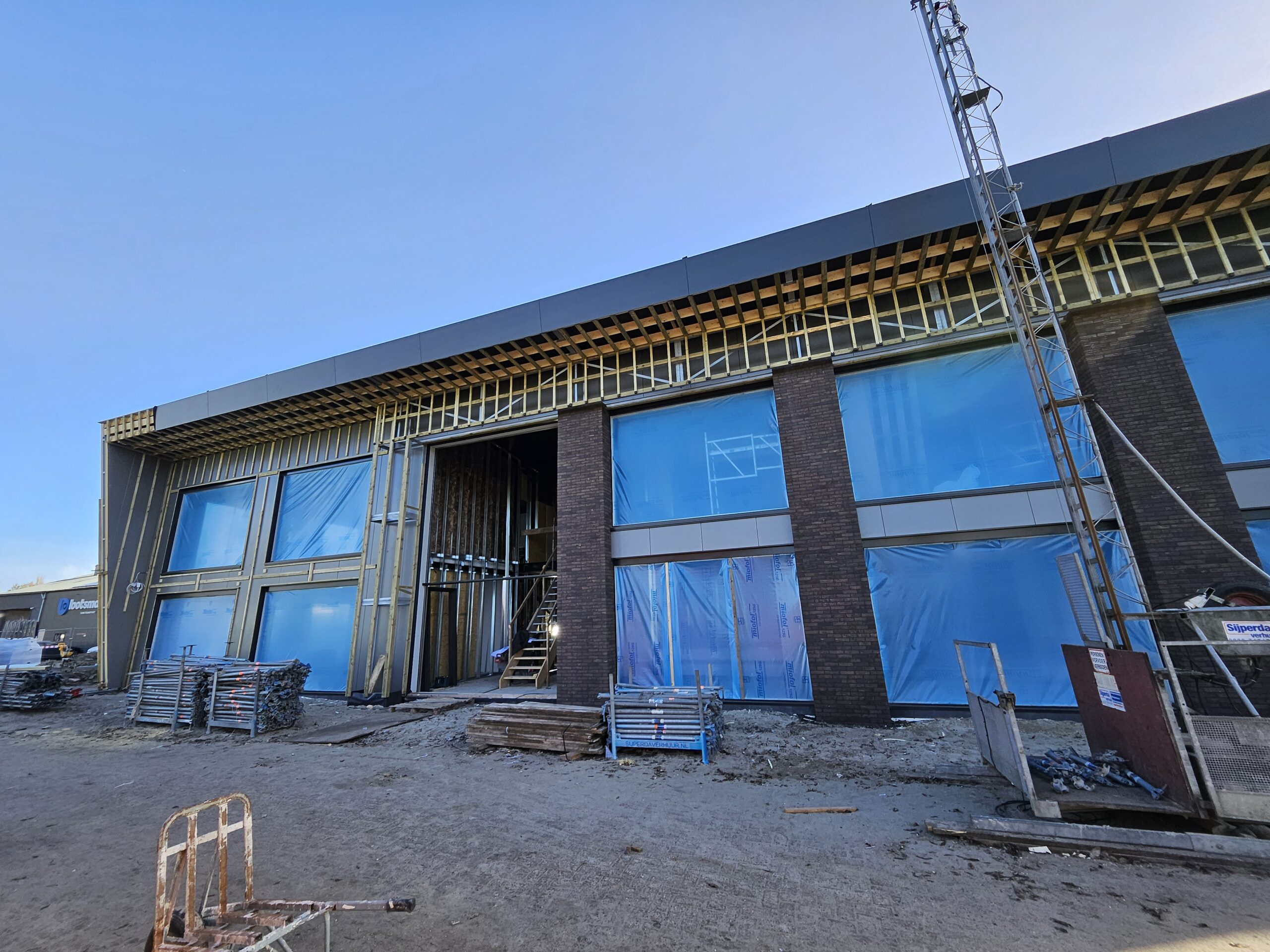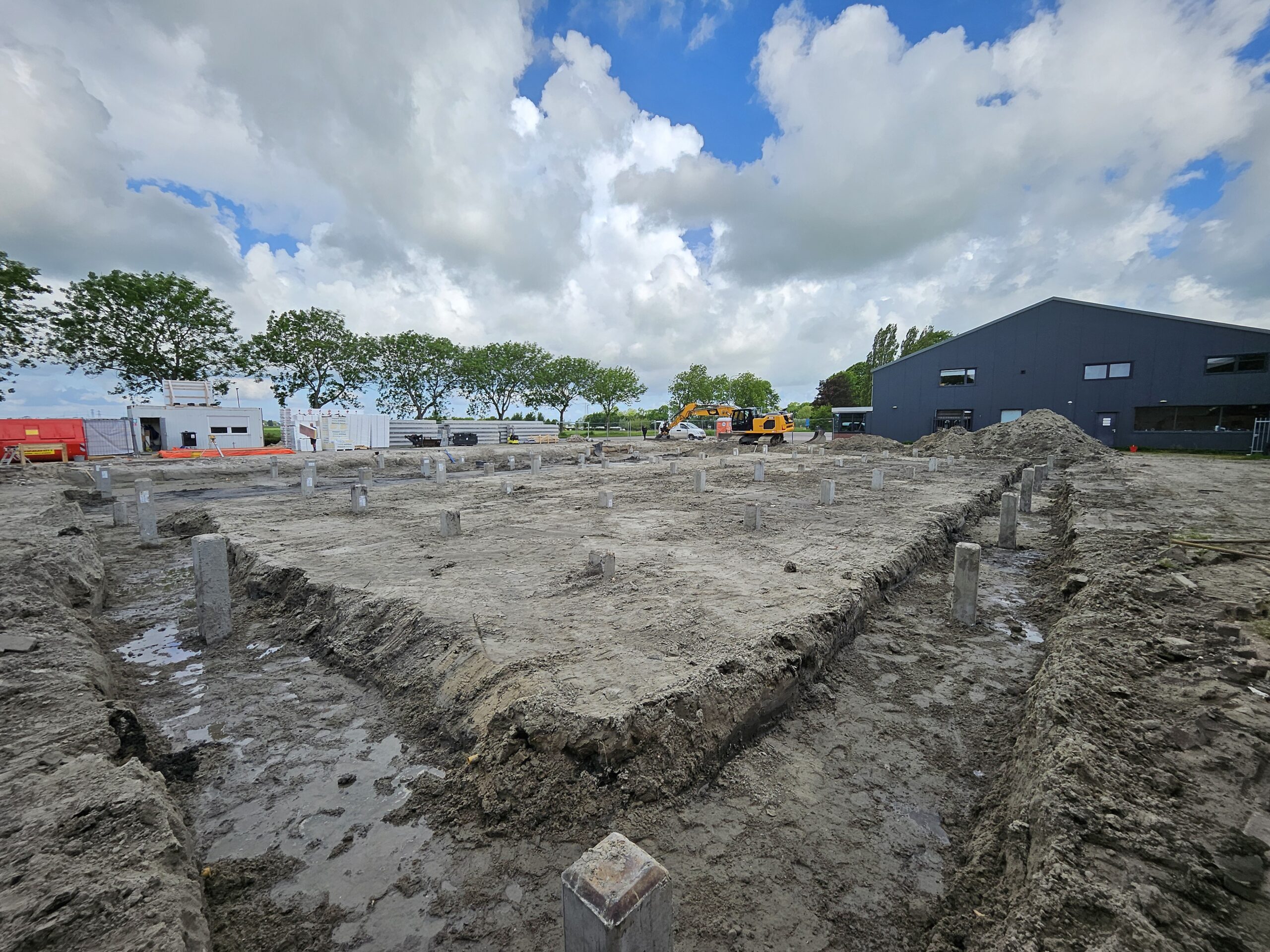 De eerste paal is geslagen op 24 mei 2024. Het kantoor heeft een gebruikersoppervlakte van ongeveer 600m2 en de loods 485m2. Het gebouw is traditioneel gebouwd en voldoet aan de eisen en normen van daar de dag. Het pand wordt opgeleverd circa eind 2024.